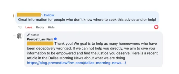 Whether you’re in Texas or another state, the firm’s attorneys are here to help you understand your rights, your contracts, and your options for relief. Call Prevost Law Firm today to request your review and learn why so many homeowners describe their experience with one phrase: “I finally feel heard.”